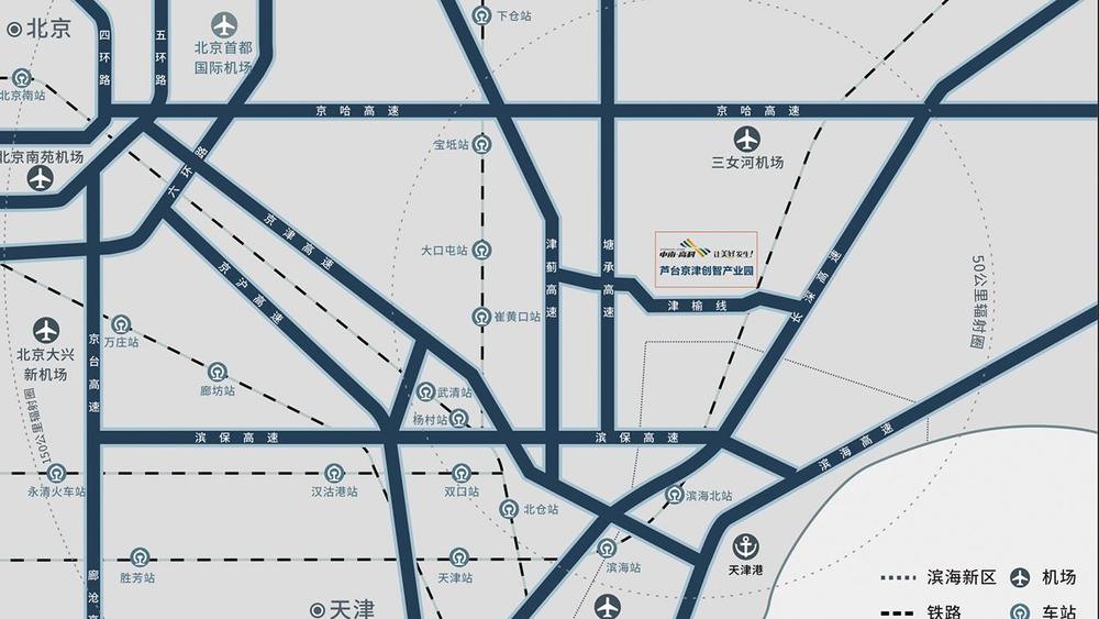 本項(xiàng)目交通便利,距蘆臺(tái)站8.8公里,距濱海新區(qū)10公里,基地北側(cè)為榮昌路,南側(cè)為富康道,東側(cè)為規(guī)劃路,周圍更有多條省、國(guó)級(jí)道路,距離塘承高速出入口收費(fèi)站僅10公里。產(chǎn)業(yè)發(fā)展環(huán)境優(yōu)越,半小時(shí)雄安新區(qū),兩小時(shí)直達(dá)北京。