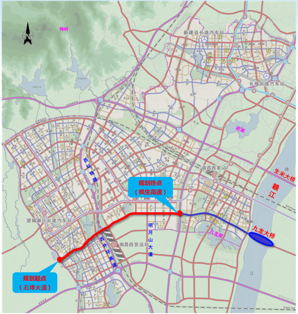 撫州大街位于南昌市西南部,與九龍大橋、東蓮路共同組成“十縱十橫”干線路網(wǎng)中的交通性主干道,由西向東依次貫穿望城→九龍湖→蓮塘等多個(gè)組團(tuán)。隨著經(jīng)濟(jì)發(fā)展,城市格局向周邊拓展,城市框架逐漸拉大,望城和九龍湖西部將進(jìn)入快速發(fā)展階段,區(qū)域主要基礎(chǔ)設(shè)施也急需進(jìn)行建設(shè),撫州大街西延工程的啟動(dòng)對(duì)緩解區(qū)域交通壓力、完善市域路網(wǎng)、提升外圍干線道路網(wǎng)的交通服務(wù)水平、促進(jìn)區(qū)域協(xié)調(diào)發(fā)展有著重要意義。本次規(guī)劃范圍為撫州大街的西延伸段,西起石流公路,東至楓生高速,長約7.85km,道路紅線km/h。