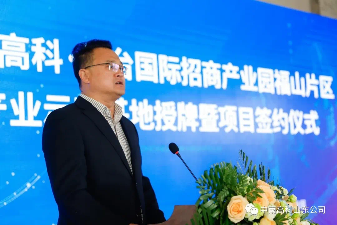活動伊始,高新區(qū)福山園管委會副主任宮濤同志進行致辭。宮副主任高度肯定這次產(chǎn)業(yè)示范基地授牌暨項目簽約儀式,并表示未來將以無微不至的貼心服務,確保項目快速推進、企業(yè)蓬勃發(fā)展,與中南高科一道,攜手并肩、精誠合作,共創(chuàng)美好燦爛的明天!