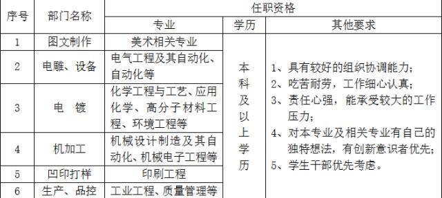 公司因發(fā)展需要招聘管培生50名,發(fā)展方向?yàn)楫a(chǎn)品商務(wù)、展示設(shè)計(jì)師、銷售管理、IT工程師、人力資源、安全管理、生產(chǎn)計(jì)劃、采購、質(zhì)量管理、物流管理、工藝設(shè)計(jì)、生產(chǎn)管理、設(shè)備管理等崗位.