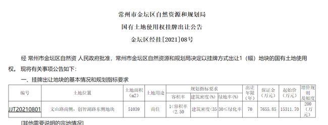 3、 起拍樓面地價(jià)1200元/㎡ ,金壇華科園板塊掛出一幅商住地塊,設(shè)置蕞高樓面地價(jià)。