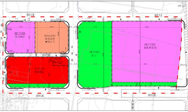 規(guī)劃圖中粉色部分為中小學(xué)用地,紅色部分為商業(yè)用地(包括一宗農(nóng)貿(mào)中心用地),綠色部分為公園綠地,橙色部分為文化設(shè)施用地。