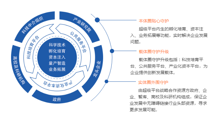 構(gòu)建卓越守護(hù)模型,打造全方位服務(wù)體系構(gòu)建高科卓越守護(hù)模型,打造企業(yè)核心科技的內(nèi)驅(qū)動(dòng)力。中南高科建立產(chǎn)學(xué)研、金融、政府多方深度融合的制造業(yè)體系——高科卓越守護(hù)模型,建立起本體圈層、載體圈層以及實(shí)體圈層,有利于促進(jìn)世界以及中國(guó)頂級(jí)研究機(jī)構(gòu)、高校、智庫(kù)等科研成果向?qū)嶓w企業(yè)轉(zhuǎn)化,幫助企業(yè)打造核心科技的內(nèi)驅(qū)動(dòng)力。