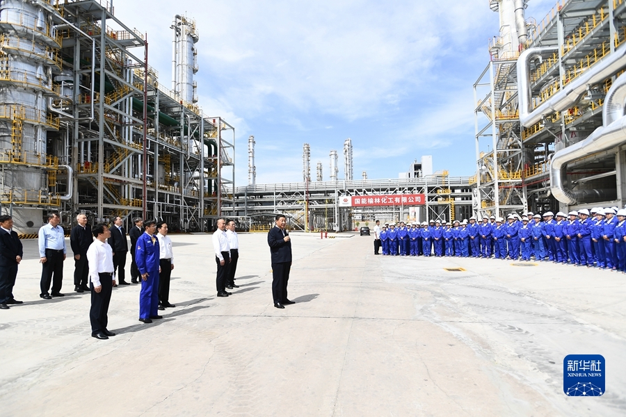 9月13日至14日,中共中央、國家、在陜西省榆林市考察。這是13日上午,在國家能源集團(tuán)榆林化工有限公司年產(chǎn)40萬噸乙二醇項(xiàng)目現(xiàn)場考察。新華社記者 李學(xué)仁 攝