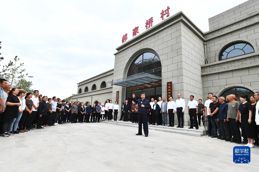 位于綏德縣城西南的張家砭鎮(zhèn)郝家橋村,是綏德地委在抗戰(zhàn)時(shí)期經(jīng)過調(diào)查研究發(fā)現(xiàn)的一個(gè)模范村,通過開展“村村學(xué)習(xí)郝家橋,人人學(xué)習(xí)劉玉厚”活動(dòng),掀起了大生產(chǎn)熱潮。黨的十八大以來,郝家橋村積極發(fā)展特色產(chǎn)業(yè),村容村貌和村民生活發(fā)生了深刻變化,榮獲“全國脫貧攻堅(jiān)楷?!睒s譽(yù)稱號。14日下午,來到這里,詳細(xì)觀看村史展覽,了解這個(gè)“紅色山村”的光榮革命歷史以及革命傳統(tǒng)傳承情況。隨后,來到村民侯志榮家中看望。侯志榮一家曾經(jīng)因病致貧,靠著各級幫扶和自身努力2016年擺脫貧困。強(qiáng)調(diào),看到你們一家人日子越過越好、人丁興旺,我感到很欣慰。讓鄉(xiāng)親們過好光景,是我們黨始終不渝的初心使命,就要把這件事情干好,不斷交上好答卷。全黨全國全社會(huì)都要大力弘揚(yáng)脫貧攻堅(jiān)精神,奮發(fā)圖強(qiáng)、自力更生,不斷奪取全面建設(shè)社會(huì)主義現(xiàn)代化國家新的更大勝利。