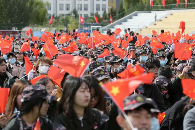 典禮伊始,伴隨著雄壯的國歌,鮮艷的五星紅旗在體育場上空冉冉升起。2021級新生開學(xué)典禮隆重開幕。