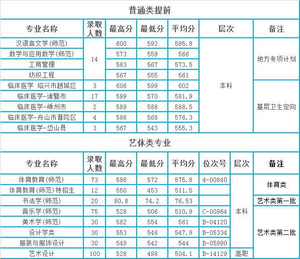 紹興文理學院2021年浙江省各專業(yè)錄取分數(shù)和位次情況