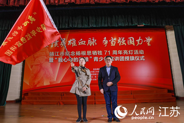 圖為“我心中的英雄”青少年紅色宣講團(tuán)授旗儀式。靖江市委宣傳部供圖